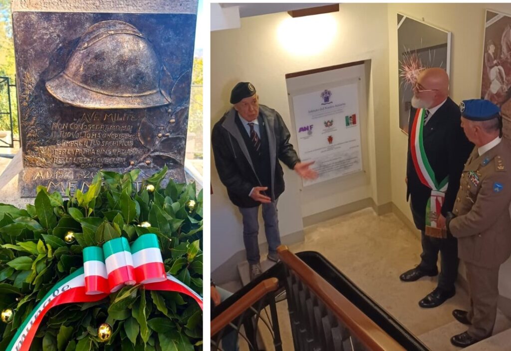 la presentazione del bronzo commemorativo del Milite Ignoto ad opera dello scultore Umberto Corsucci e la svelatura presso il palazzo municipale della targa ricordo in memoria del Milite Ignoto