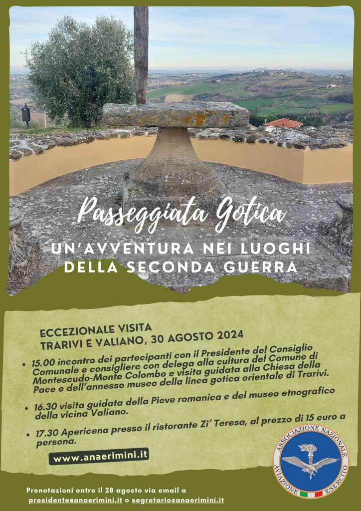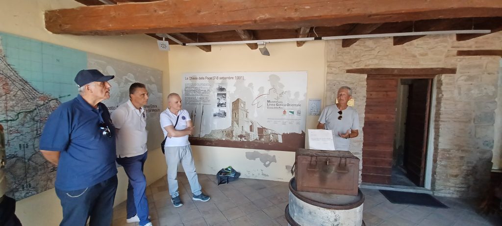 Sulla spinta emozionale delle iniziative nate dal progetto culturale “Gotica80” a cui la nostra associazione aderisce con convinta partecipazione, è stata organizzata una piacevole ed istruttiva “passeggiata” lungo le zone della linea gotica orientale, resa possibile dalla squisita disponibilità delle autorità locali – accompagnati e guidati dal presidente del consiglio comunale di Montescudo-Monte Colombo Gilberto Arcangeli e dal prof. Umberto Lagari, noto esperto e curatore del Museo della Linea Gotica Orientale .