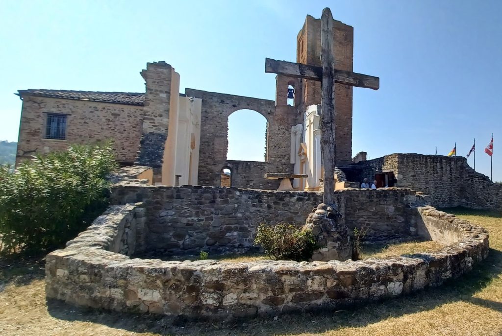 Manufatto storico che risale ad una pieve romanica, poi trasformata nel 1200 in una abbazia benedettina ed infine nella chiesa medioevale di S.Pietro, prima di essere quasi completamente distrutta per la sua posizione strategica sui colli circostanti durante la seconda guerra mondiale. Nel 1991 è stata  rinominata come Chiesa della Pace e della Riconciliazione, dove è possibile sentire i rintocchi della Campana della Pace che reca la scritta “La guerra mai più – War never again – Nie wieder Krieg” , donata al parroco Don. Mario Molari, fautore principale del recupero dell’antico monumento, dai veterani militari inglesi, canadesi, tedeschi ed italiani che combatterono aspramente su queste colline nel 1944.
