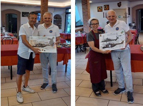 Il Presidente ANAE VEGA Giovanni Ramunno consegna stampe ricordo al Presidente del Consiglio Comunale e alla responsabile del ristorante Zi Teresa