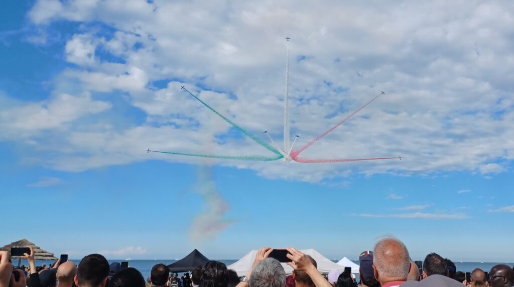 Una mattina di riflessione e commozione a cui ha fatto seguito per gli appassionati del volo un pomeriggio con il naso all’insu, per assistere all’Air Show sul litorale riminese organizzato dall’aeroclub di Fano, con un programma conclusosi con il passaggio della pattuglia acrobatica italiana PAN ma che ha visto esibirsi tra i molti aeromobili anche l’elicottero di soccorso HH139 dell’Aeronautica Militare, l’elicottero MH-169A della Guardia di Finanza, il CAP 231 velivolo acrobatico francese guidato dal noto Pierluigi Zito, diversi Yakovlev Yak acrobatici, gli storici aerei bimotori come iI Fokker e i Tiger Month di Corrado Spagna ma anche una copia dello SPAD, ovvero l’aeroplano di Francesco Baracca, prima dell’esibizione di un elicottero A129 Mangusta del 7° rgt. AVES “VEGA”.